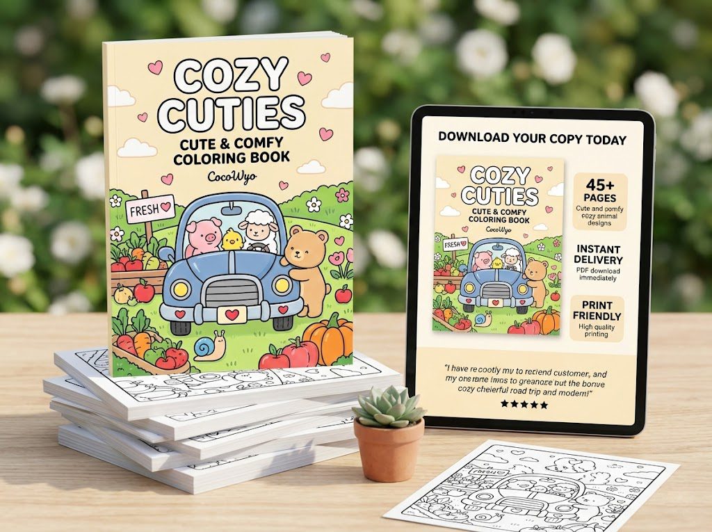 If you share your hobbies on social media, the Cozy Cuties – Cute & Comfy Coloring Book is fantastic content. The “travel aesthetic” combined with cute animals is a recipe for high engagement.