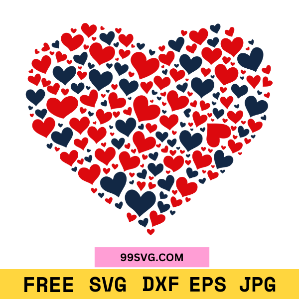One Loved Heart Made of 100 Hearts SVG Valentine’s Day SVG for Cricut
