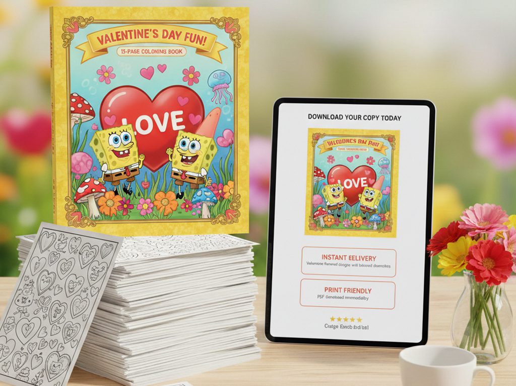 Choosing the Valentine’s Day Fun Coloring Book means choosing laughter over serious romance. It is perfect for classroom parties, playdates, or just a relaxing afternoon at home. The characters are instantly recognizable as fun and friendly, making it a hit with fans of all ages. The lines are bold and clear, perfect for crayons, markers, or colored pencils.